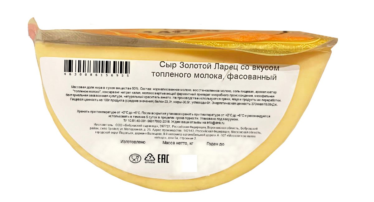 Сыр Ларец вкус топленого молока Золотой полутвердый 50%, 245г