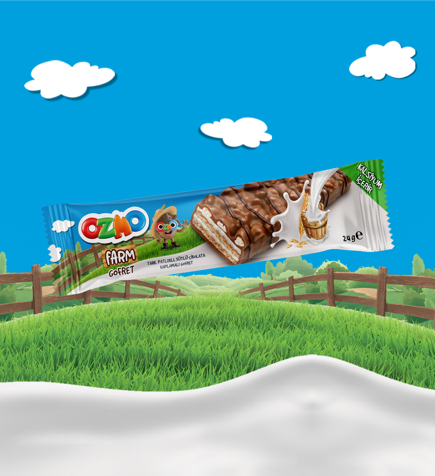 Вафля Ozmo Farm с молочной начинкой покрытые молочным шоколадом с хрустящим зерном, 24г х 24 шт