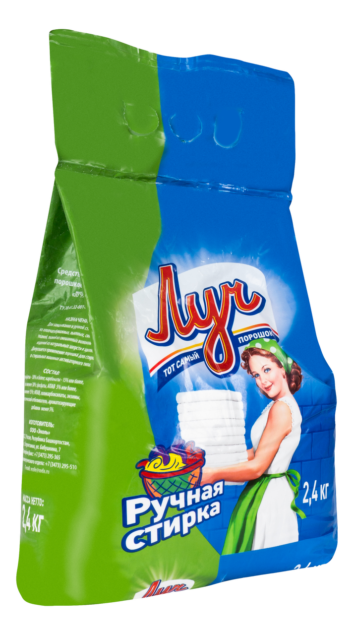 Порошок стиральный Луч ручная стирка, 2.4кг применяется для замачивания и ручной стирки белого и цветного белья из хлопчатобумажных, льняных, синтетических тканей, тканей из смешанных волокон (кроме изделий из натуральных шерсти и шелка), а также стирки в стиральных машинах активаторного типа. Обладают высокой моющей способностью и экономичным расходом.