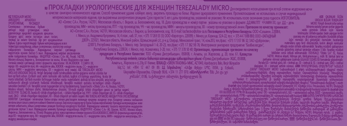 Урологические прокладки TerezaLady Micro предназначены для капельного недержания мочи. Прокладки содержат суперабсорбент, который превращает жидкость в гель. Система Odor Dry System с помощью специальных антибактеральных добавок подавляет распространение запаха. Таким образом сохраняется нейтральный уровень рН кожного покрова. Продукция протестирована европейскими дерматологами.