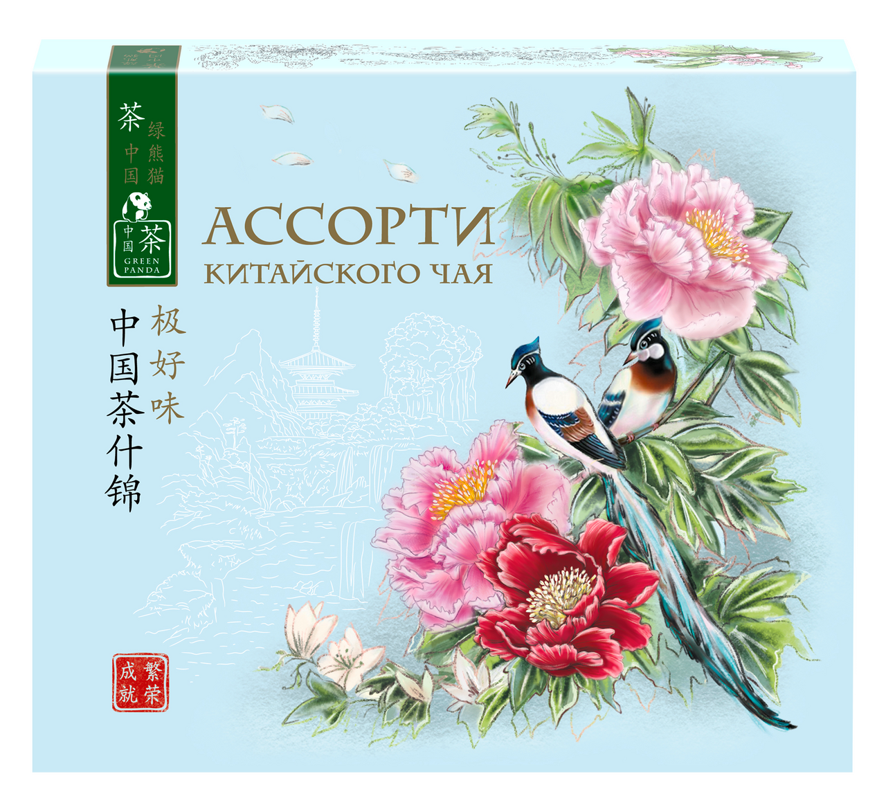 Ассорти китайского чая Зеленая Панда 6 видов, упаковка оригинальная, подойдет в качестве небольшого презента, отличное качество чая, разнообразные яркие вкусы, чай ароматный, каждый вид чая в отдельном кармашке и оригинальной упаковке.