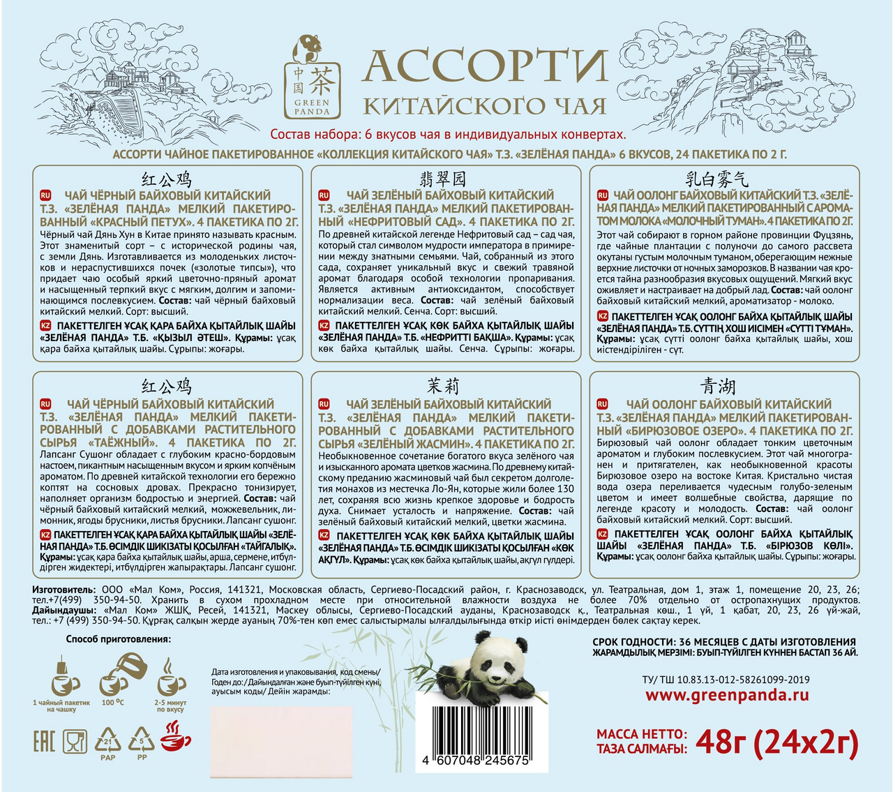 Набор подарочный Green Panda Чай китайский ассорти (2г x 24шт), 48г