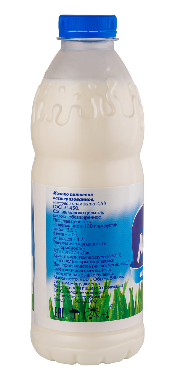 Молоко Томское молоко пастеризованное 2.5%, 900г