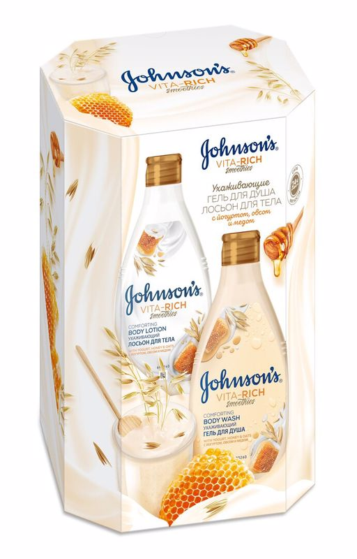 Подарочный набор Johnson's Adult Vita-Rich гель для душа + лосьон для тела с йогуртом овсом и медом, 250мл x 2шт