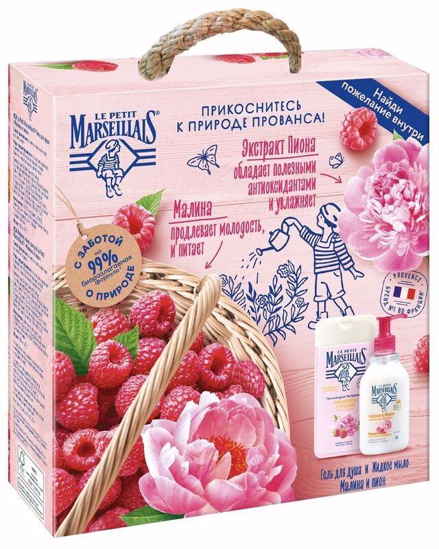Подарочный набор Le Petit Marseillais Малина и пион гель для душа 250мл + Малина и пион мыло жидкое для рук 300мл