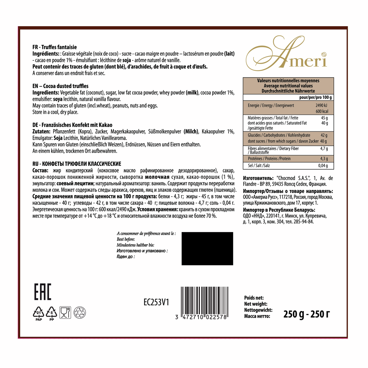 Конфеты Ameri трюфели, 250г