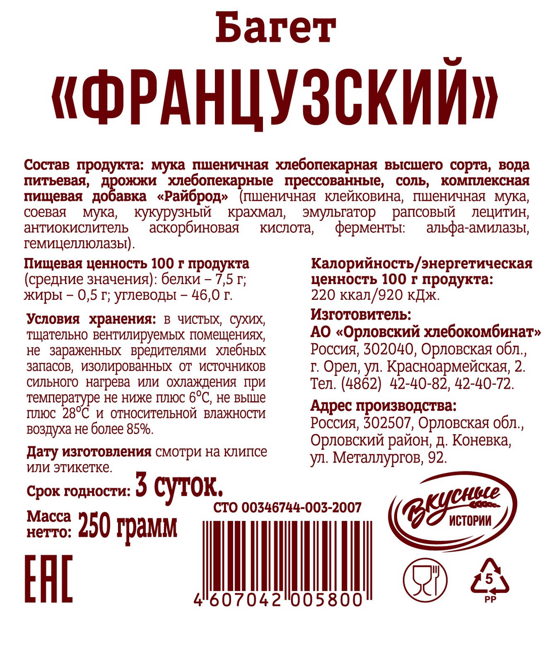 - Бренд ОРЛОВСКИЙ ХЛЕБОКОМБИНАТ