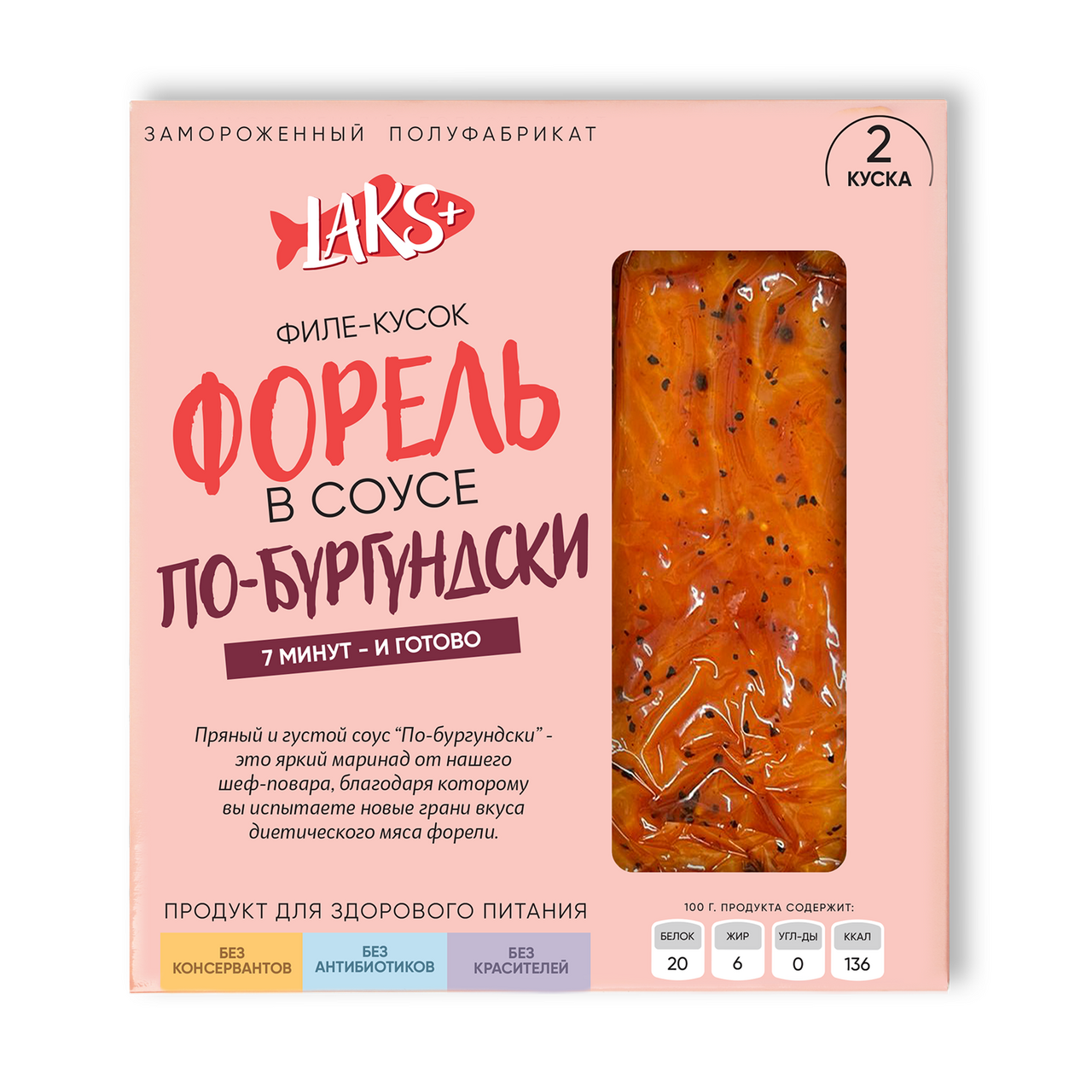 Форель Laks+ филе-кусок в соусе по-бургундски замороженная, 250г