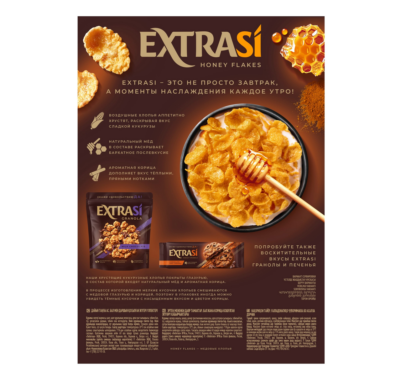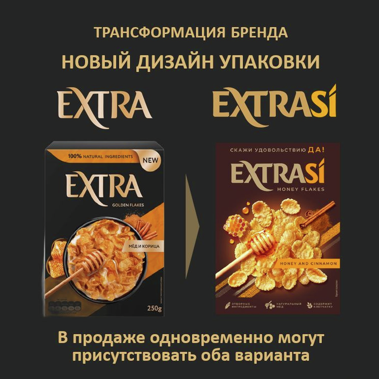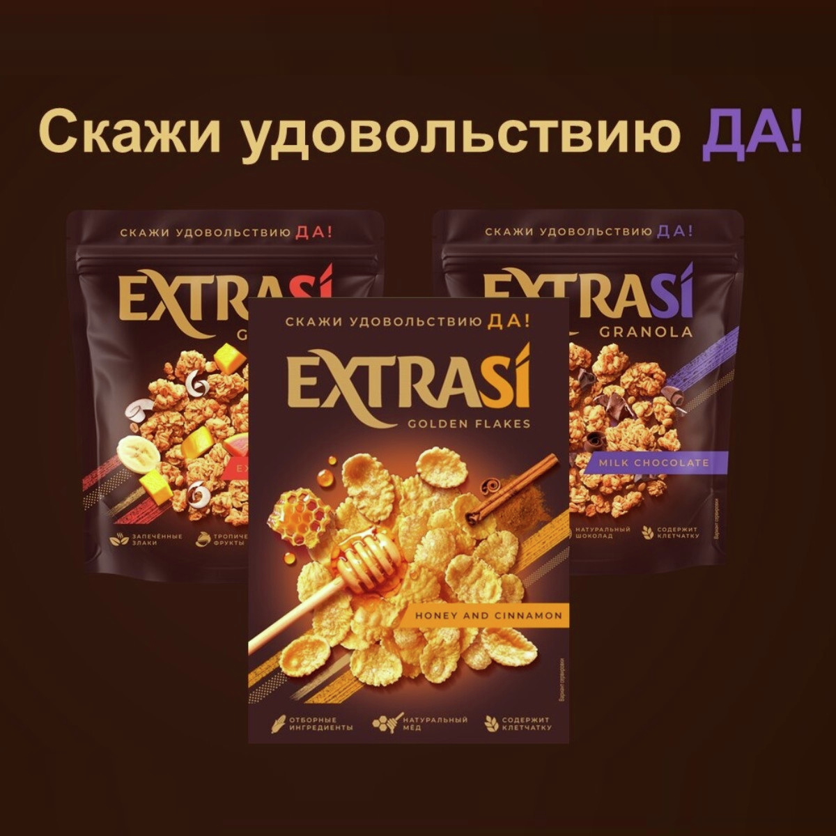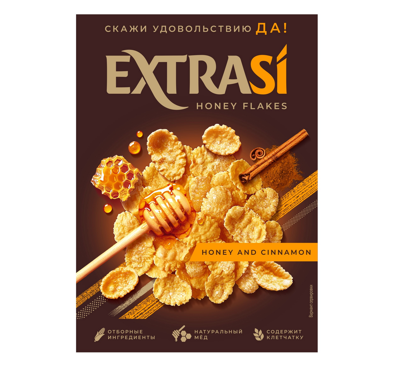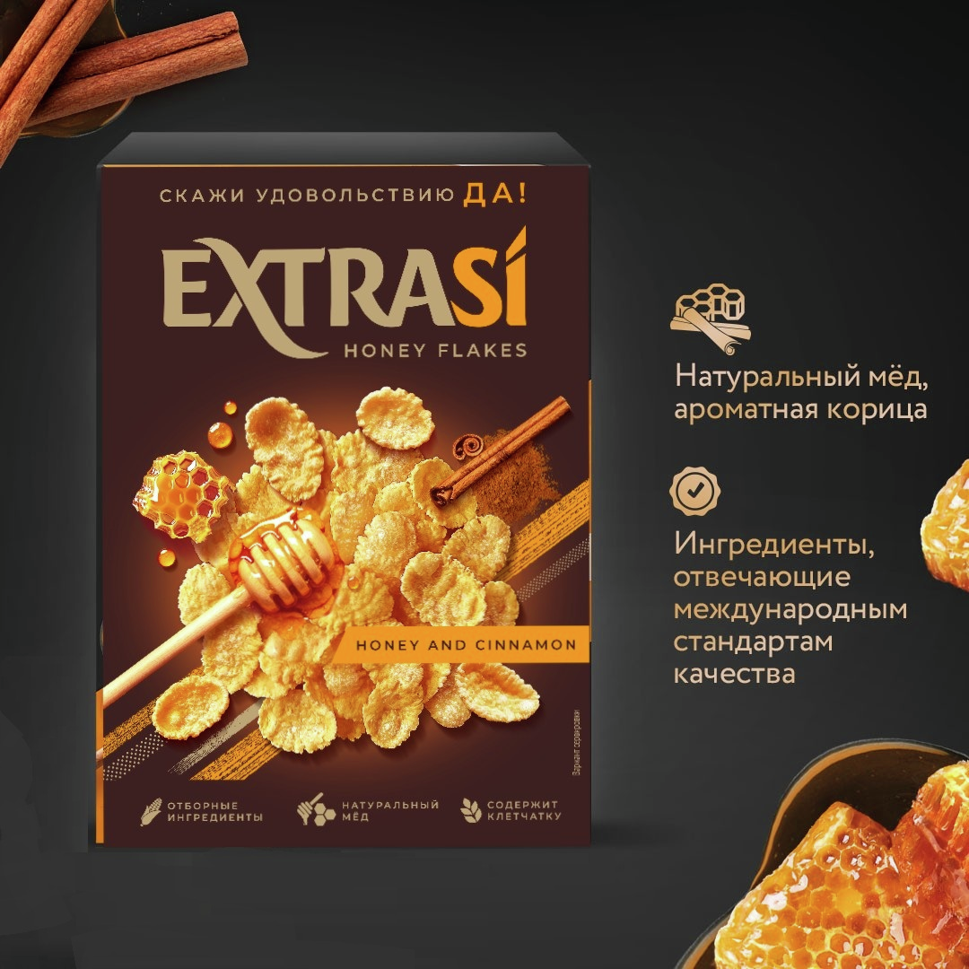 Побалуйте себя вкусными хрустящими кукурузными хлопьями EXTRASI!В их составе только 100% натуральные ингредиенты: нежный мед и ароматная корица. В этом невероятном сочетании вкусов рождается настоящее удовольствие. Хлопья EXTRASI с молоком прекрасно подойдут для вкусного и быстрого завтрака или неповторимого перекуса в течение дня. Содержит клетчатку, Можно в ПОСТ. Скажи удовольствию ДА.