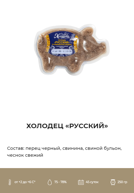 Холодец Холодушка Русский – аппетитная закуска для повседневного или праздничного стола. Продукт уже готов к употреблению: остается лишь нарезать его на порционные куски, добавить ломтик ароматного ржаного хлеба, дополнить горчицей или хреном и наслаждаться прекрасным вкусом.