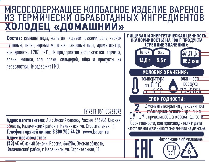 Холодец с классическим вкусом перца и чеснока, так похожий на тот, который традиционно готовят дома. Просто извлеките холодец из упаковки, украсьте свежей зеленью и подавайте к столу. Он будет эффектно выглядеть даже при самой простой подаче.