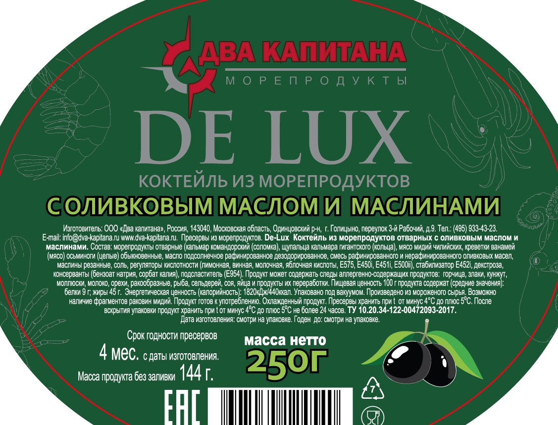 Коктейль из морепродуктов Два капитана De-lux с маслинами, 250г