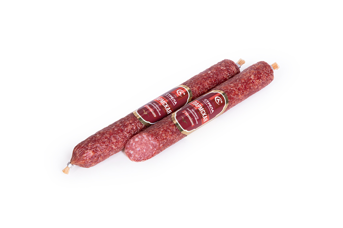 Колбаса СК Стрела Милана сырокопченая, ~250г – это ароматное мясное изделие с насыщенным вкусом. Производится из отборного мяса и букета тщательно подобранных специй. Имеет эффектный срез. Лучший вариант подачи — нарезка на тонкие слайсы. Они хорошо сочетаются с цельнозерновым хлебом или поджаренными тостами. Колбасу можно предложить гостям в качестве закуски к алкогольным напиткам. Сочное колбасное изделие насытит организм, зарядит энергией. Из нее можно приготовить вкусные бутерброды для перекуса, которые удобно взять с собой, чтобы восстановить силы. Продается в вакуумной упаковке, сохраняющей свежесть продукта. Стрела — мясоперерабатывающее предприятие, история которого начинается в 1998 г с создания небольшого цеха. За два десятка лет компания достигла лидерских позиций в Архангельской области. Каталог включает в себя около двух сотен наименований продукции на любой вкус. Это разные виды колбасок и сосисок, полуфабрикатов, буженины, карбонада, шпика, полуфабрикатов, консервов и многого другого. Предприятие активно развивается, постоянно расширяя ассортимент. Две тысячи торговых точек выбирают продукцию бренда Стрела.Приобрести колбасу СК Стрела Милана сырокопченую, ~250г можно в торговом центре METRO.
