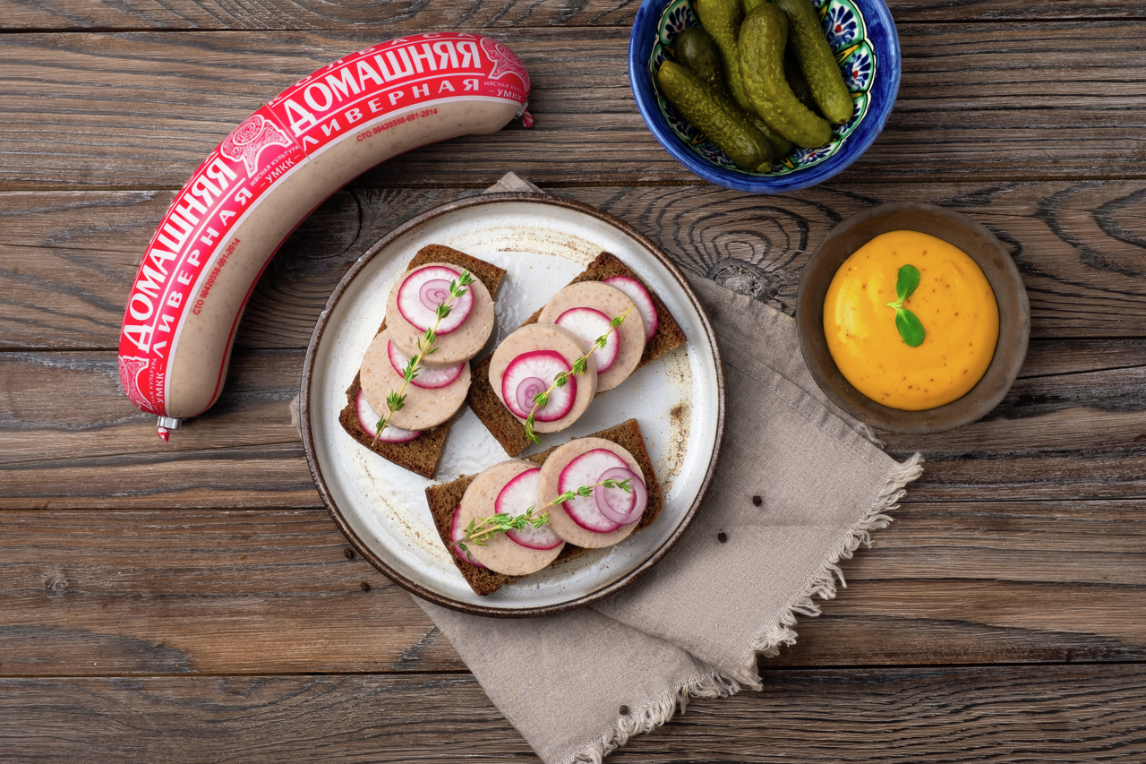 Колбаса Умкк домашняя ливерная, 250г может стать идеальным вариантом завтрака или быстрого перекуса во время перерыва на работе, дома. Аккуратно нарезанные ломтики колбасы будут идеально смотреться как на обеденном, так и праздничном столе. Продукт сочетается с хлебом, овощами, сыром, зеленью. Из него получаются вкусные бутерброды, сэндвичи, салаты, холодные, горячие закуски, паштет и многое другое. Продукт также используют для приготовления начинки для блинов и выпечки. Колбаса является питательной и отлично подходит для ежедневного употребления. Она может прийтись по душе как взрослым, так и детям. Ливерная колбаса отличается мягкой, нежной консистенцией, ярко выраженным, насыщенным вкусом и приятным ароматом. В состав входят тщательно подобранные специи, которые дарят продукту особую изюминку. Продукт содержит различные витамины, минеральные вещества, оказывающие положительное воздействие на организм человека.