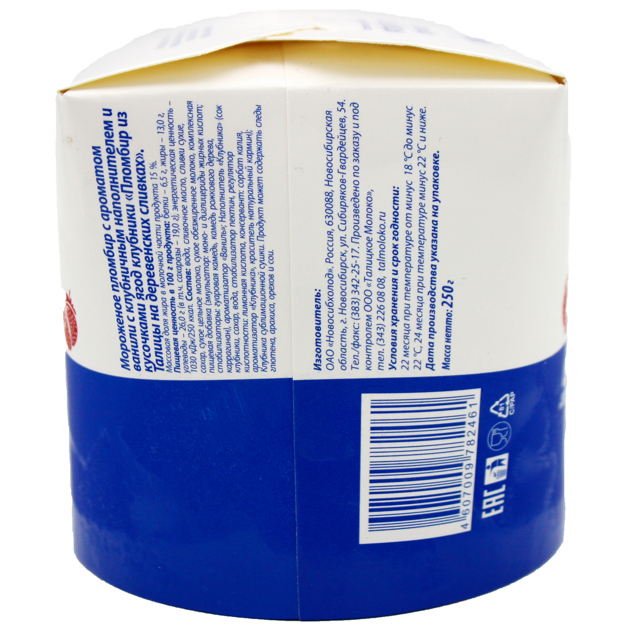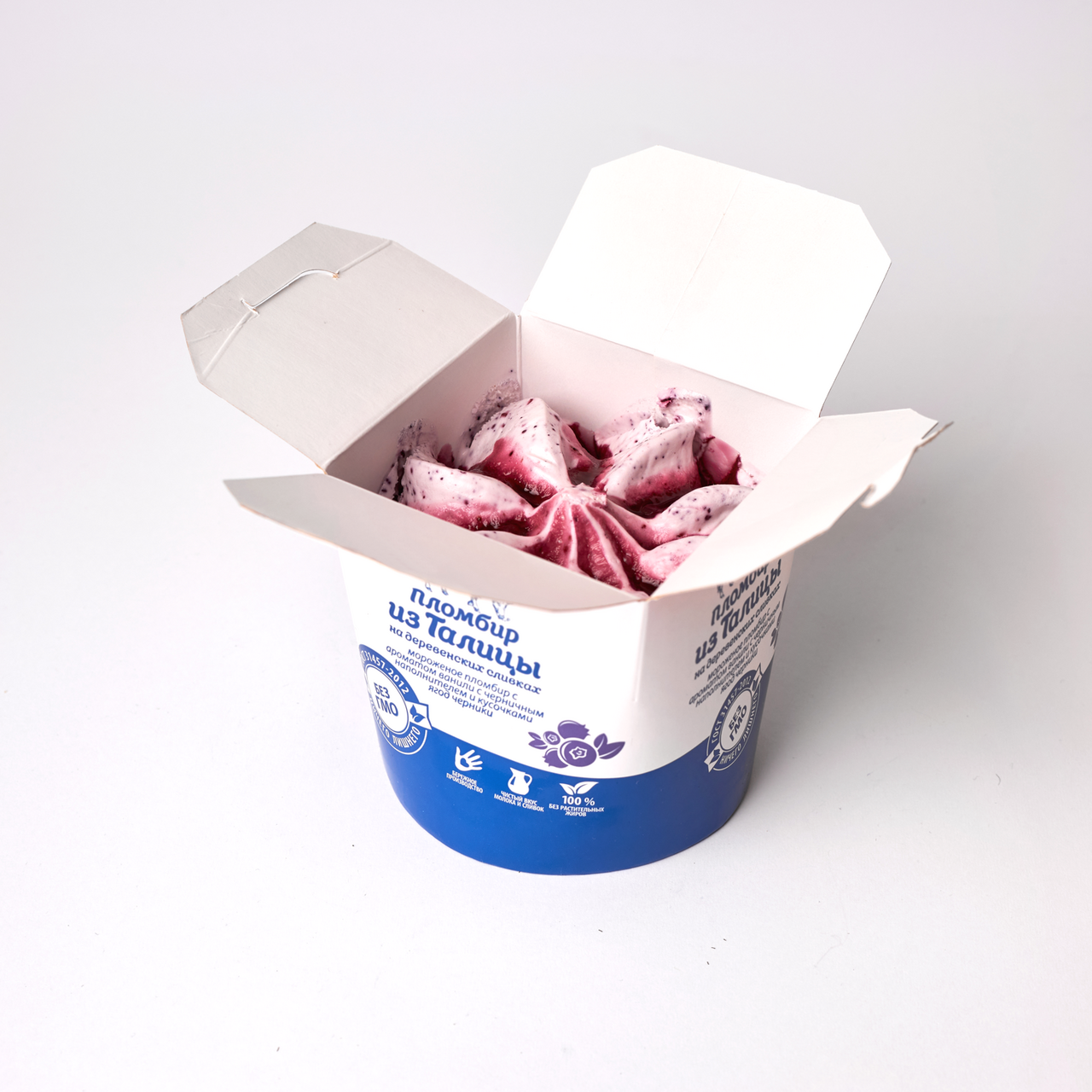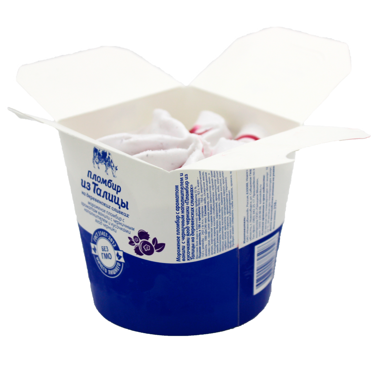 Мороженое Пломбир из Талицы Ванильное с черничным наполнителем и кусочками ягод 15%, 250г
