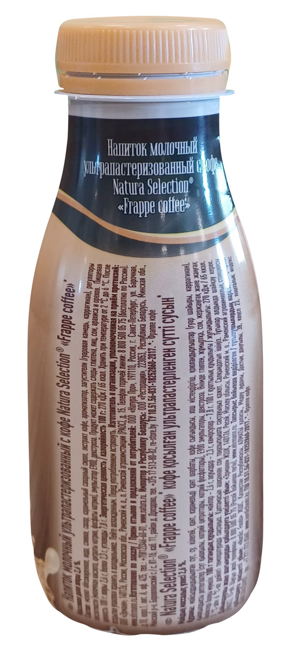 Напиток молочный ультрапастеризованный с кофе Natura Selection Frappe coffee. Мягкий вкус кофе, в меру сладкий. Нежная консистенция.