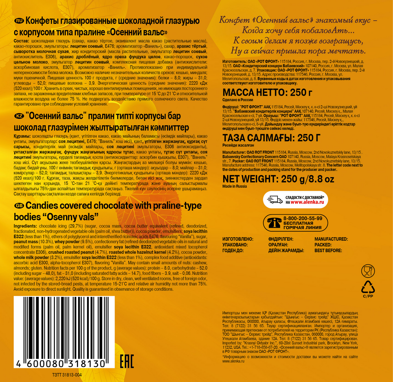 Конфеты Рот Фронт Осенний вальс, 250г