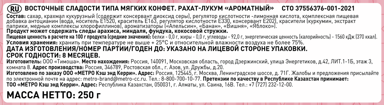 Рахат-лукум Ароматный - традиционный десерт в восточном стиле. Он буквально тает во рту и дарит отличное настроение. Оригинальное кондитерское изделие в форме мягких, полупрозрачных, сахарно-крахмальных кубиков, обсыпанных сахарной пудрой, идеально дополнит чаепитие в кругу родных и близких.