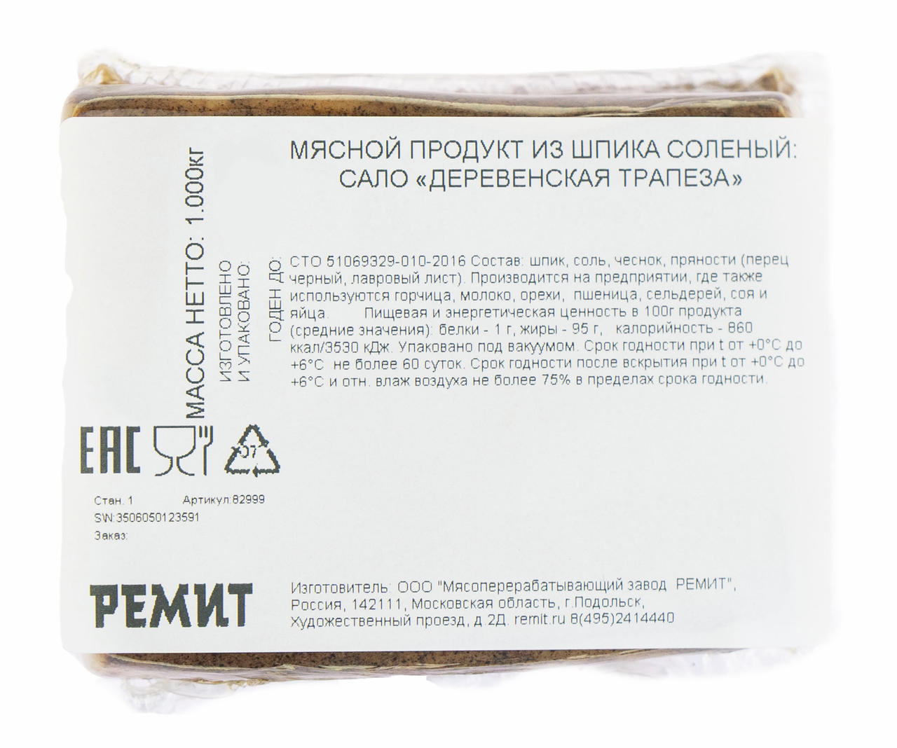 Сало Ремит Деревенская трапеза, ~250г