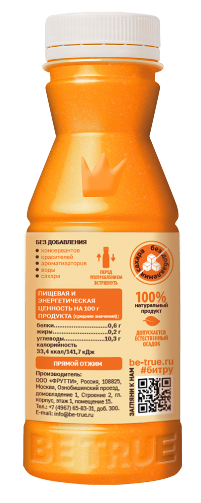 Апельсиновый сок прямого отжима, банановое пюре, яблочный сок прямого отжима, сок мандарина концентрированный, лимонный сок прямого отжима, сок лайма концентрированный.