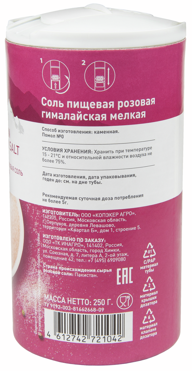 Розовая гималайская соль - природный источник 85 минералов и микроэлементов, которые присутствуют в ее природном составе и делают ее ценной добавкой к правильному и здоровому рациону. Преимущество розовой соли в её декоративных свойствах и во вкусовых качествах. Она усиливает аромат любого блюда, помогает лучше раскрыть букет специй. Гималайская соль мелкого помола хорошо растворяется, не оставляя кристаллов в готовом блюде. Уникальный продукт добывают в предгорье Гималаев, в соляных шахтах Пакистана. Особый минеральный состав объясняет приятный розовый оттенок соли и тонкий вкус. Рекомендуем использовать розовую соль для приготовления салатов, холодных закусок. Продукт подойдёт для приготовления первых и вторых блюд, маринадов, пикантных заправок.