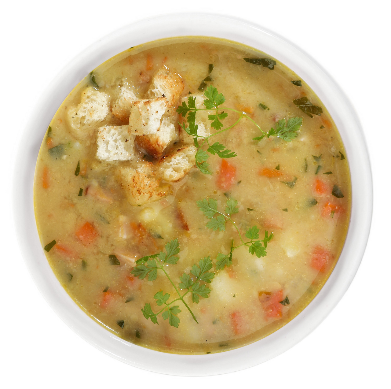 Вода, картофель, мясо свинины варено-копченое (свинина, вода, комплексная пищевая добавка (регуляторы кислотности (трифосфат натрия, пирофосфат натрия, дигидропирофосфат натрия), натуральное пищевое волокно, соль, усилители вкуса и аромата (глутамат натрия), декстроза, стабилизаторы (каррагинан, ксантановая камедь), мальтодекстрин, желирующий агент (хлорид калия)), нитритно-посолочная смесь (соль, фиксатор окраски - нитрит натрия), комплексная пищевая добавка (регуляторы кислотности (ацетат натрия, диацетат натрия, цитрат натрия), антиокислитель (изоаскорбат натрия), соль)), горох, морковь, лук репчатый, масло подсолнечное, комплексная пищевая добавка (соль, мальтодекстрин, усилители вкуса и аромата (глутамат натрия, гуанилат натрия, инозинат натрия), сахар, ароматизатор идентичный натуральному, дрожжевой экстракт, сухой растительный жир, загуститель (ксантановая камедь), лук сушеный, регулятор кислотности (лимонная кислота)), комплексная пищевая добавка (соль, декстроза, усилитель вкуса и аромата (глутамат натрия), ароматизатор идентичный натуральному), соль, петрушка перец черный, кориандр, лавровый лист.
