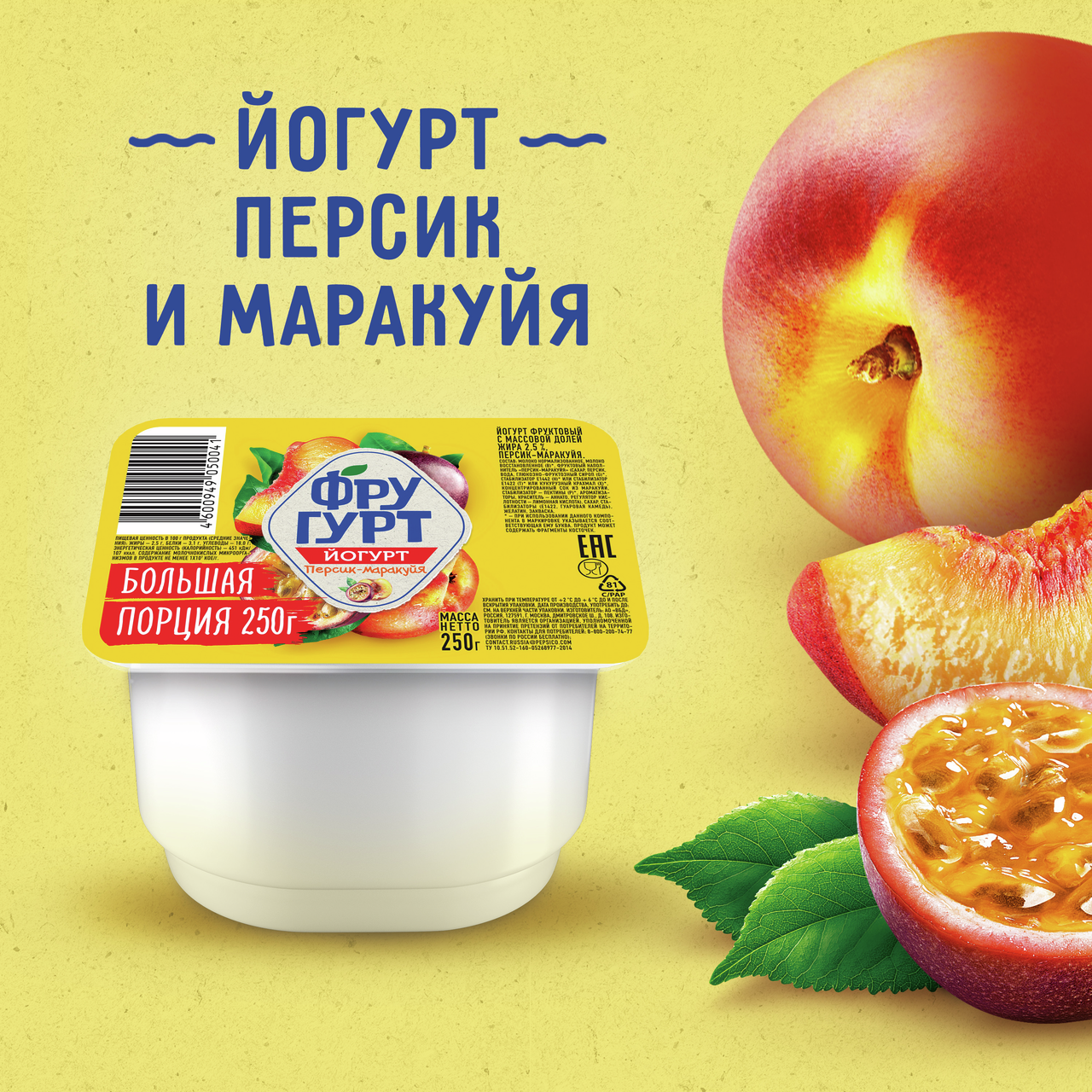 Йогурт Фругурт фруктовый маракуйя 2.5%, 250г