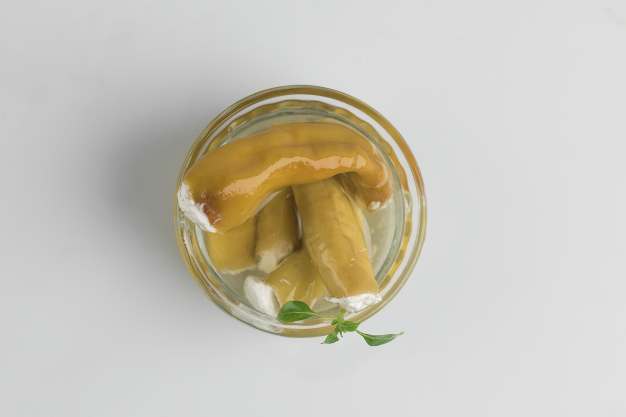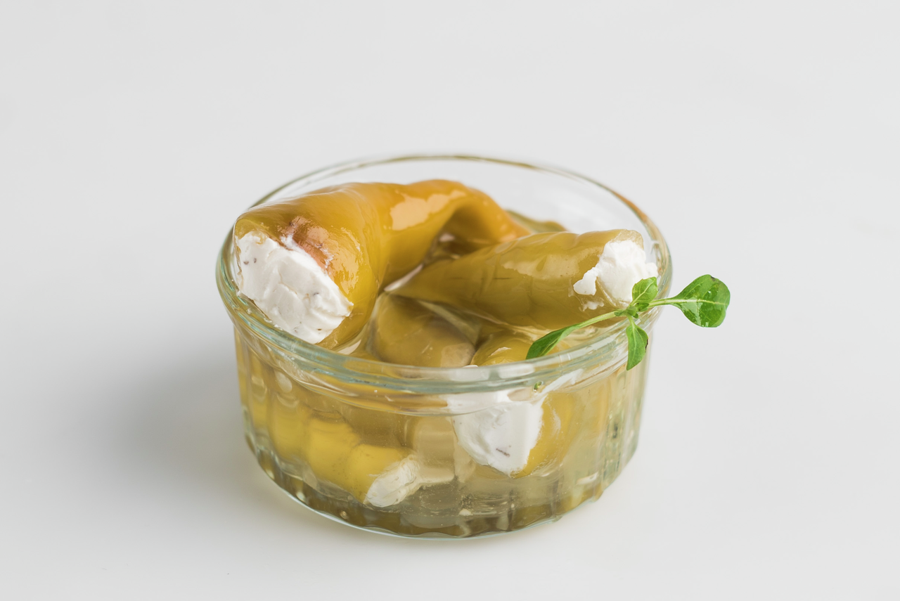 Перчики зеленые с сыром Terra del Gusto, 250г — это необычное сочетание сливочного сыра с сладковато-острыми нотками. Оно заинтересует гурманов и тех, кто любит пробовать что-то новое и оригинальное. Деликатес станет настоящим украшением праздничного стола и понравится гостям. Большое количество начинки и заправка из рапсового масла не позволят оторваться от продукта. Им захочется наслаждаться снова и снова. Его можно подавать в качестве самостоятельного блюда со свежеиспеченным цельнозерновым хлебом. Маленькие перчики хорошо дополнят гарниры (картофельное пюре, рассыпчатую гречневую или пшеничную кашу), а также мясные блюда.