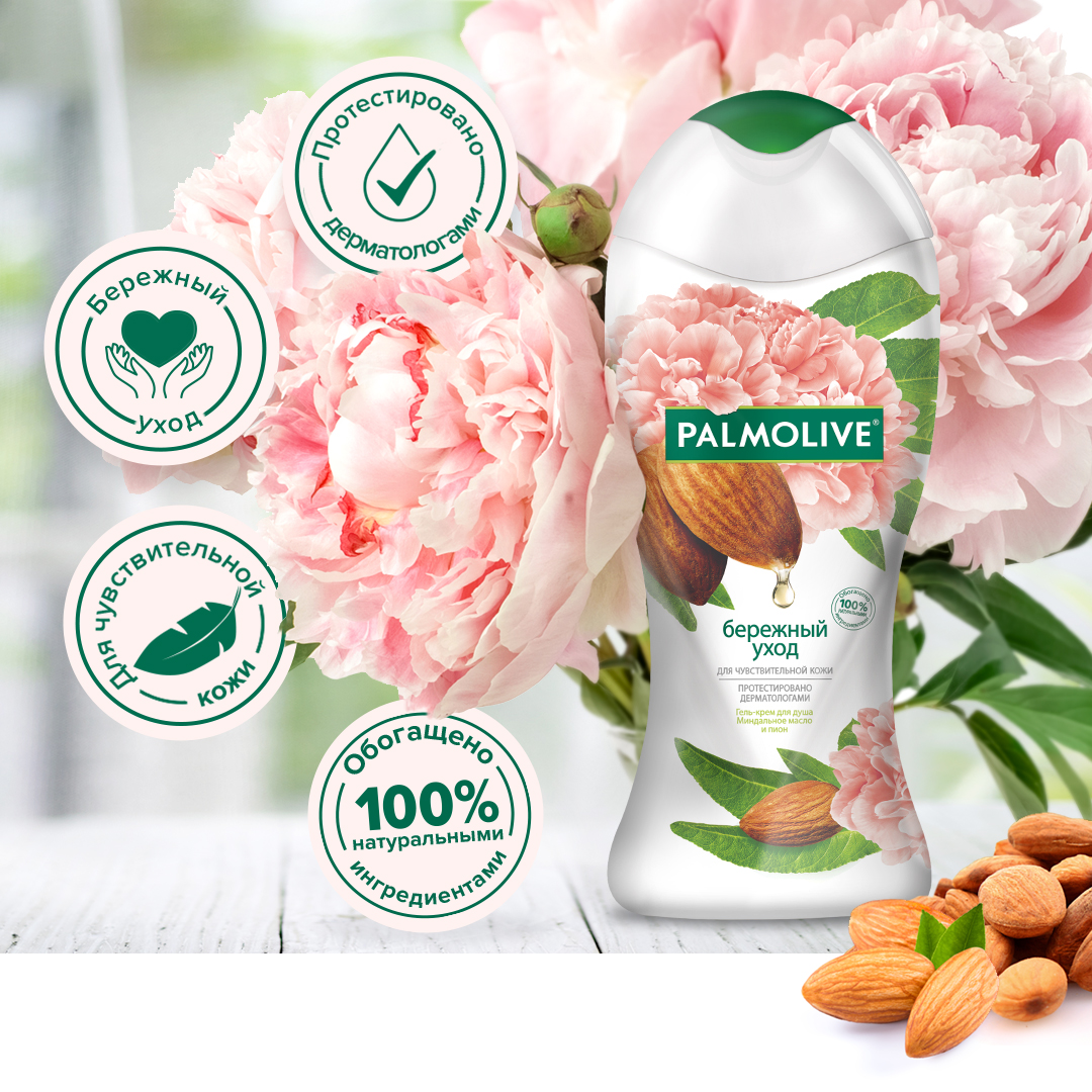 Гель - крем для душа Palmolive Бережный Уход с миндальным маслом и пионом для чувствительной кожи, 250мл