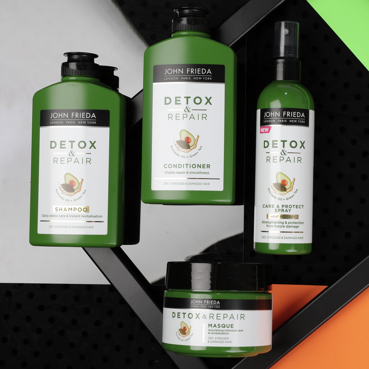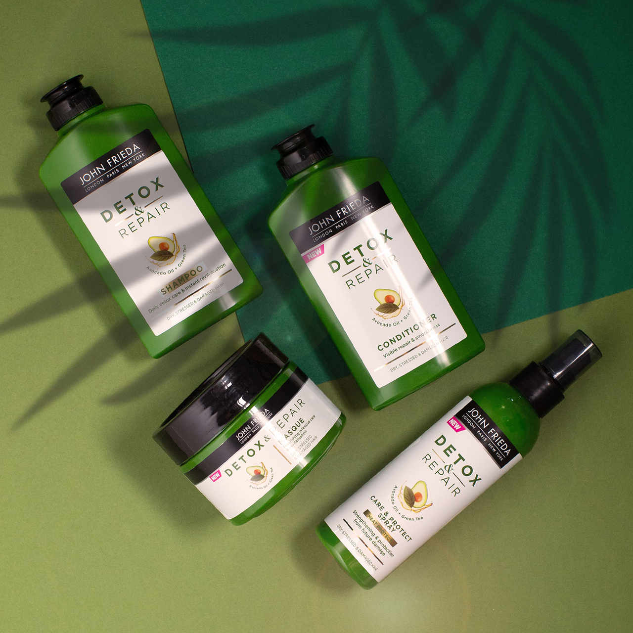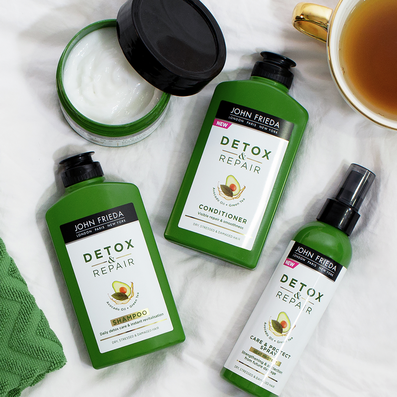 Шампунь марк�� John Frieda из специальной коллекции Detox&Repair мягко, но эффективно очищает волосы, создает идеальную основу для заметного восстановления, возвращает им жизненную силу и оживляет внешний вид, даря гладкость и блеск. В составе — насыщенный антиоксидантами зеленый чай и питательное масло авокадо. Для наилучшего результата рекомендуется использовать шампунь вместе с кондиционером и маской Detox&Repair.Способ применения: нанесите шампунь на влажные волосы, вспеньте и тщательно смойте.