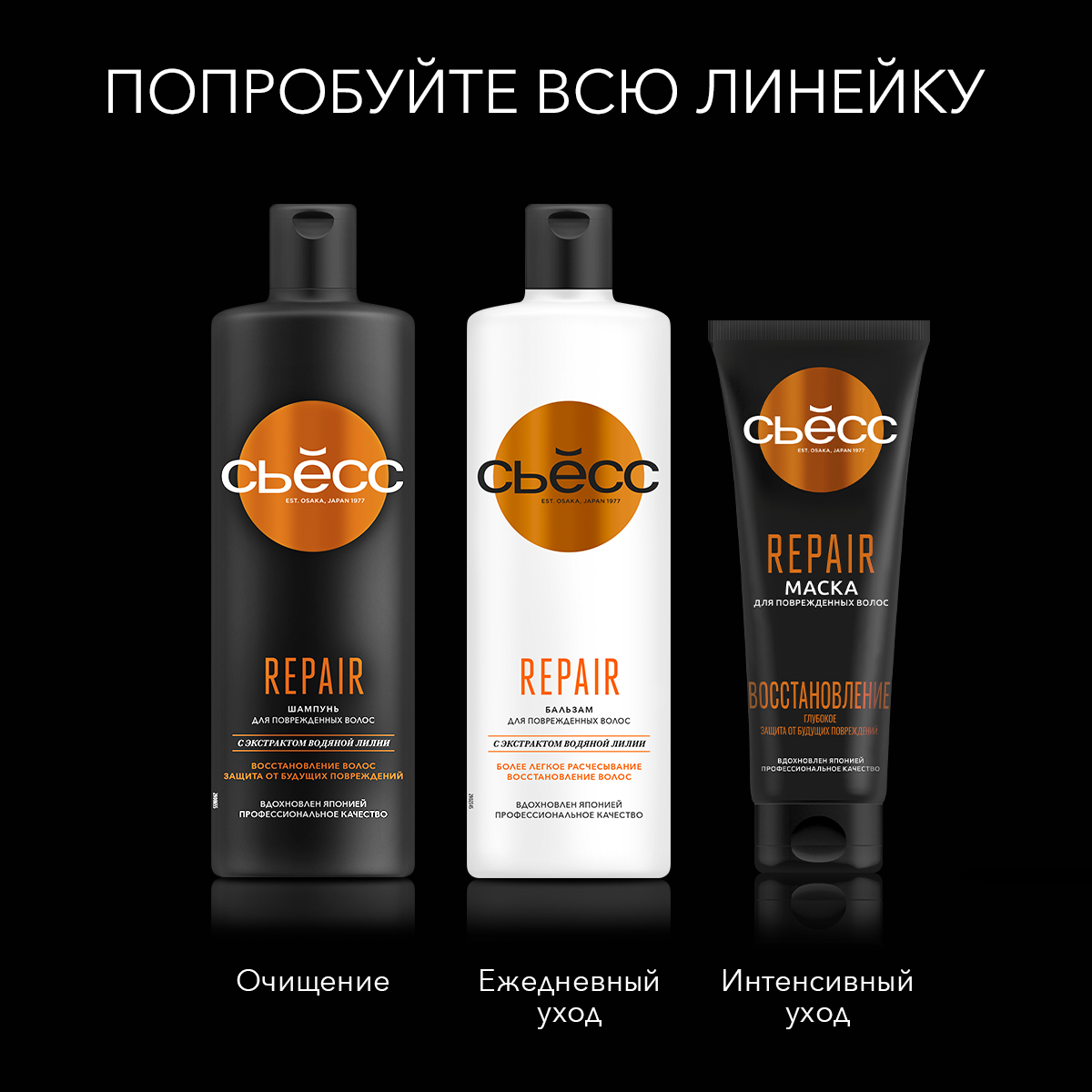 С момента основания Сьесс в Осаке в 1977 году наша миссия – предоставлять средства профессионального качества, чтобы ваши волосы всегда выглядели красивыми и ухоженными как после салона. Профессиональные формулы, вдохновленные Японией, соединяют в себе натуральные ингредиенты и передовые технологии в уходе за волосами. Сьесс маска для волос Repair для поврежденных волос: укрепляет волосы и снижает ломкость; наполняет волосы силой.