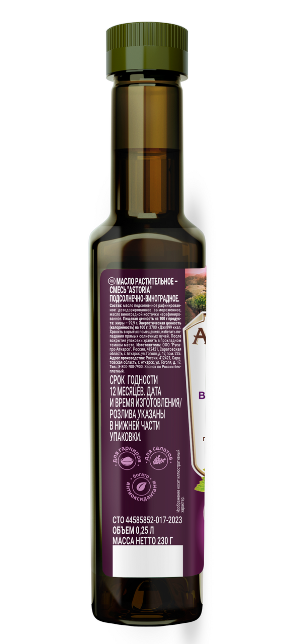 Масло подсолнечное Astoria с маслом виноградной косточки, 250мл