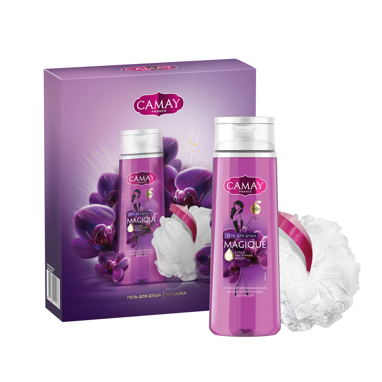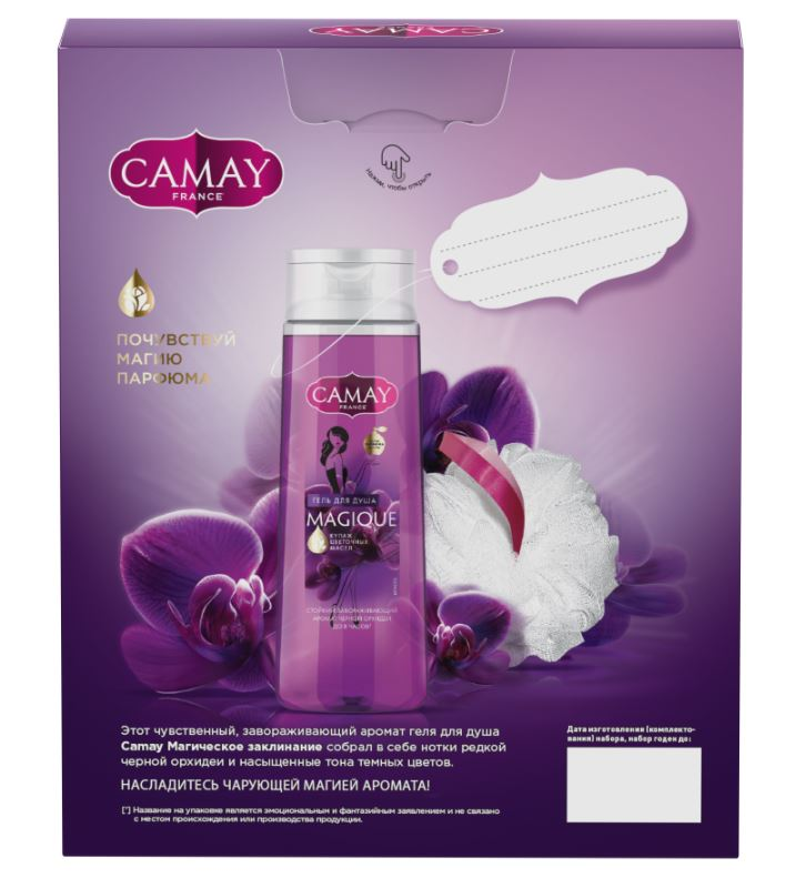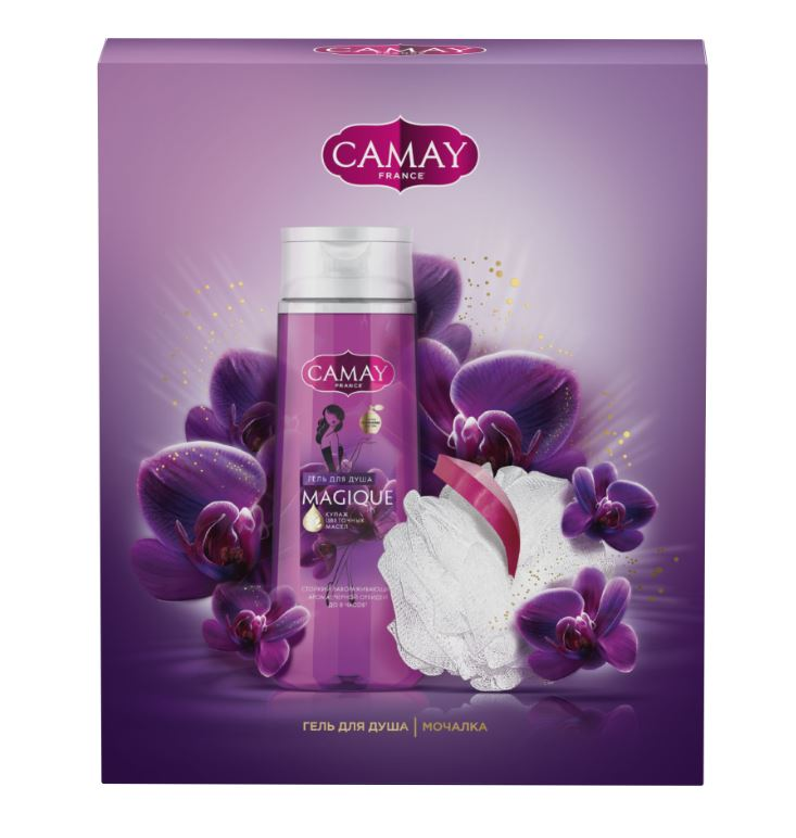 Подарочный набор Camay Magique 2023 Гель для душа 250мл + мочалка