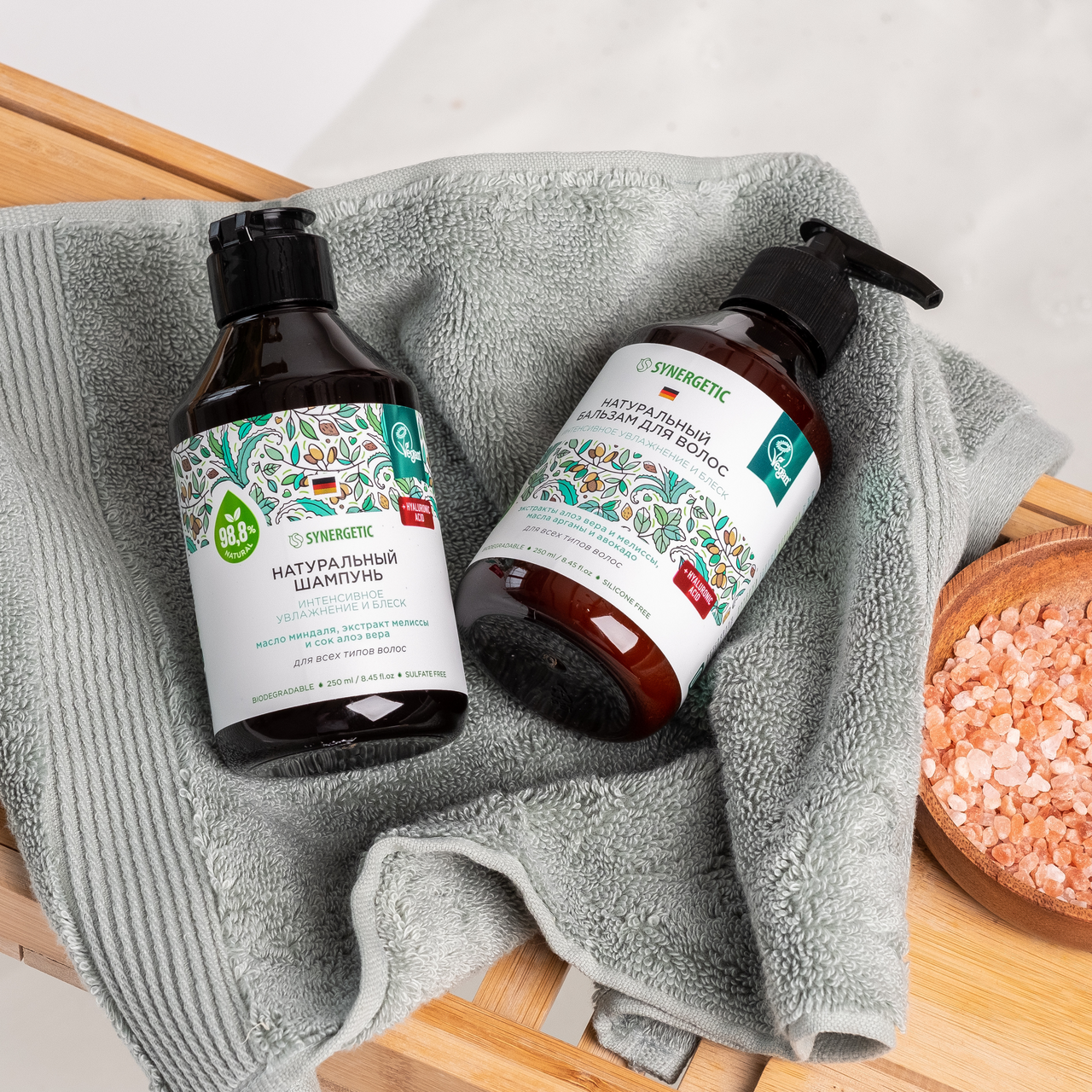 Натуральный бальзам для волос SYNERGETIC Интенсивное увлажнение и блеск — эффективное средство для ухода за всеми типами волос — более чем на 98% состоит из натуральных компонентов.Формула на основе растительных компонентов без силиконов восстанавливает структуру волос, активный кондиционирующий комплекс делает их эластичными, смягчает и увлажняет, а гиалуроновая кислота придает здоровое сияние.Натуральный бальзам содержит масла арганы и авокадо, которые питают и укрепляют волосы по всей длине, а экстракты алоэ и мелиссы придают им эластичность и блеск.Благодаря инновационному составу кожа головы остается увлажненной до 72 часов. Активная формула бальзама усиливает ее естественные барьерные функции и поддерживает баланс микробиома.Натуральный бальзам не содержит силиконов, парабенов, минеральных масел, красителей, компонентов животного происхождения, не тестируется на животных и сертифицирован британской организацией The Vegan Society. Знак Vegan — мировой стандарт этичной продукции.
