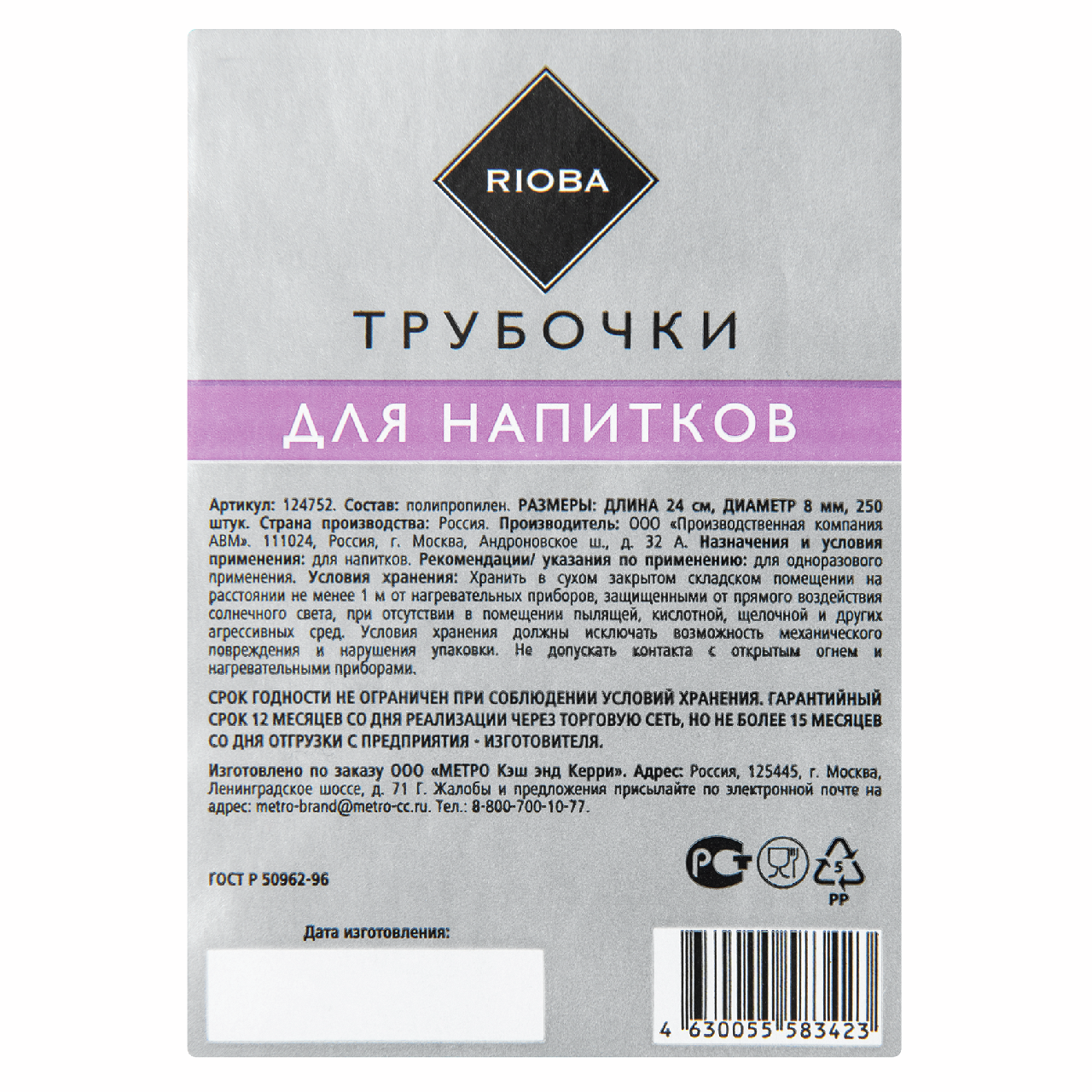 - Комплектация Трубочка - 250 шт.