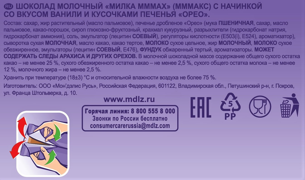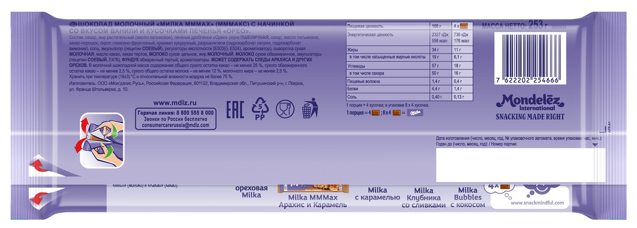 Шоколад Milka Mmmax Oreo молочный, 253г