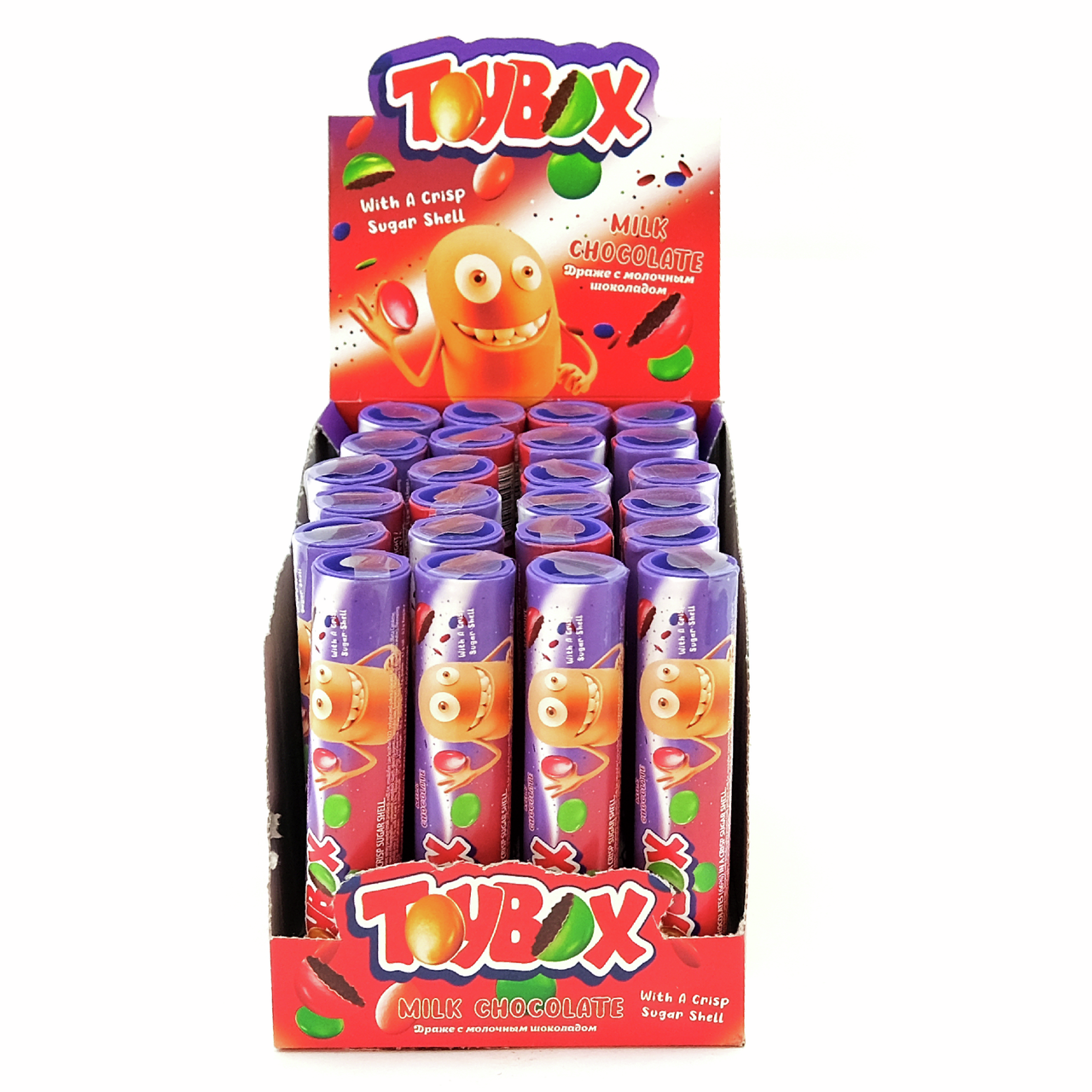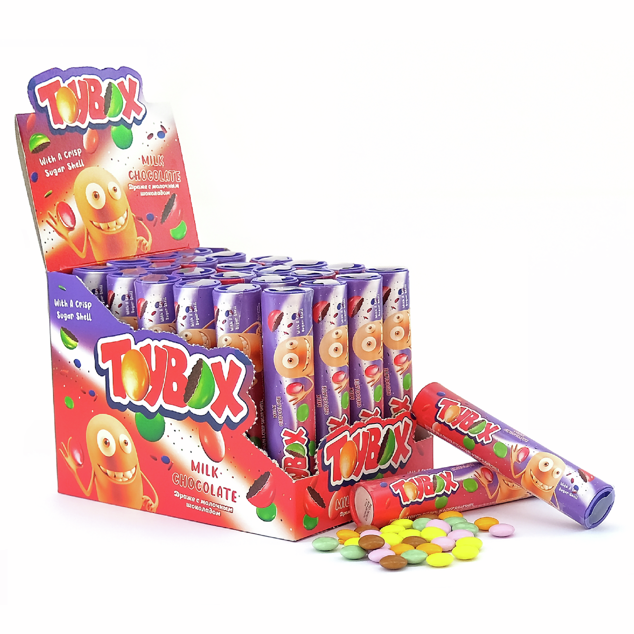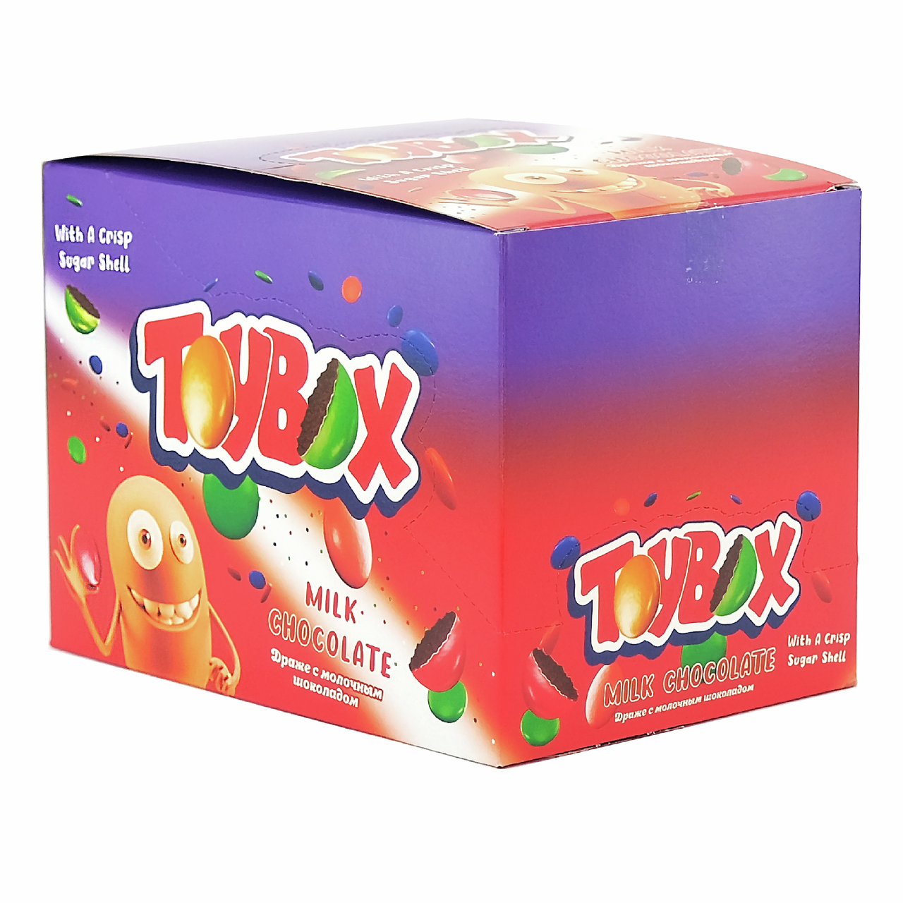 Драже Toybox с шоколадом в сахарной оболочке, 25г x 24 шт - невероятно вкусное угощение представляет собой драже из молочного шоколада, облитое яркой цветной глазурью, не оставит равнодушными ни взрослых, ни детей.