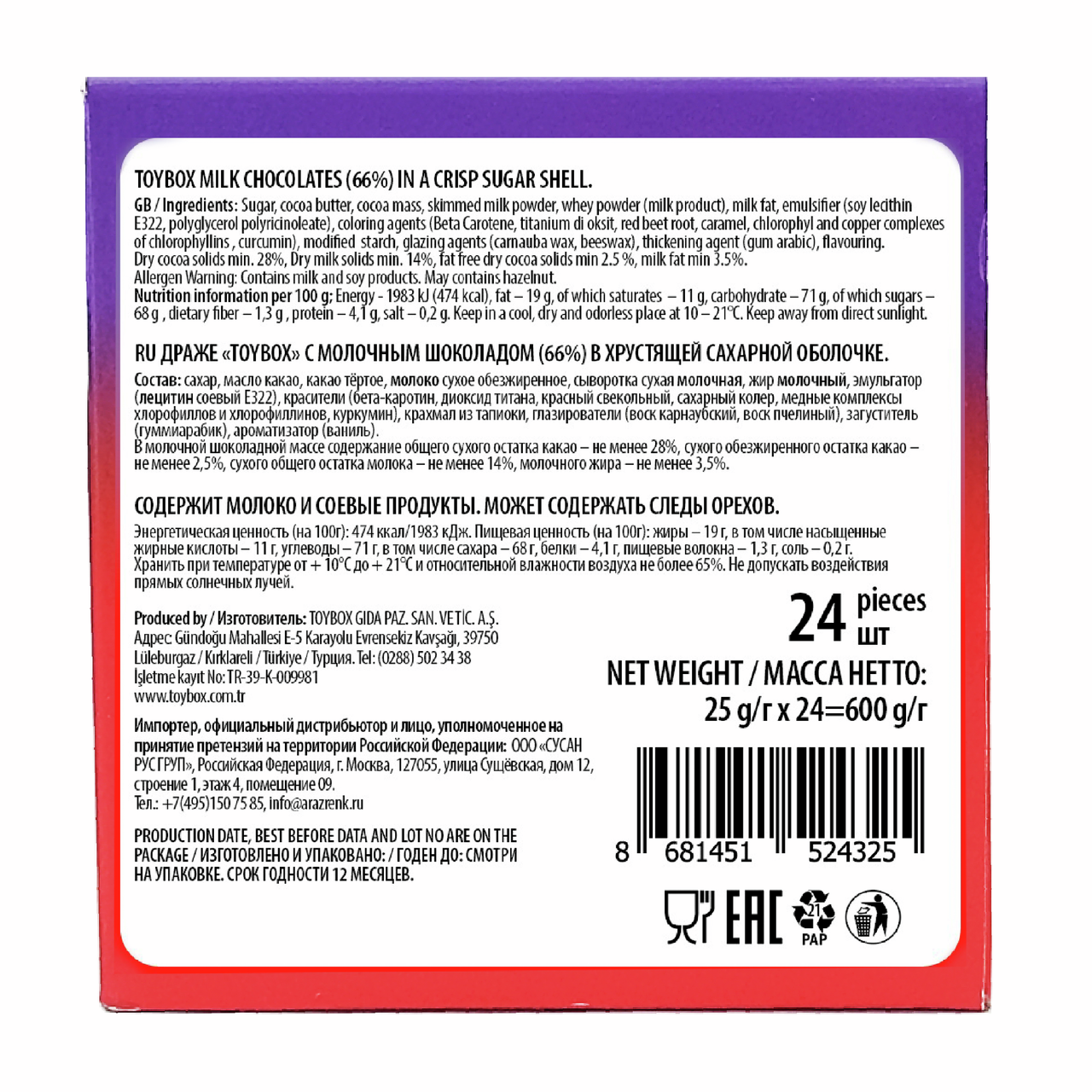 Драже Toybox с шоколадом в сахарной оболочке, 25г x 24 шт