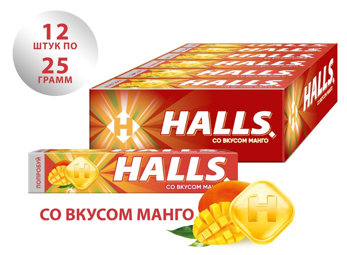 Леденцы Halls Манго, 25г x 12 шт