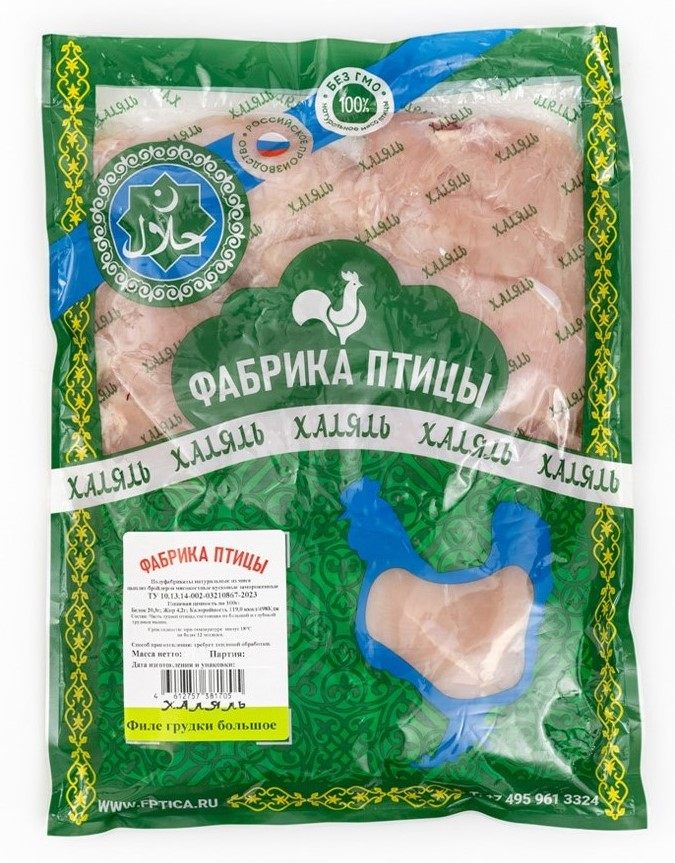 Филе грудки цыпленка-бройлера Фабрика птицы Халяль большое замороженное, 2.5кг