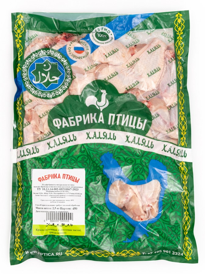 Крыло цыпленка-бройлера Фабрика птицы Халяль плечо-локоть замороженное, 2.5кг