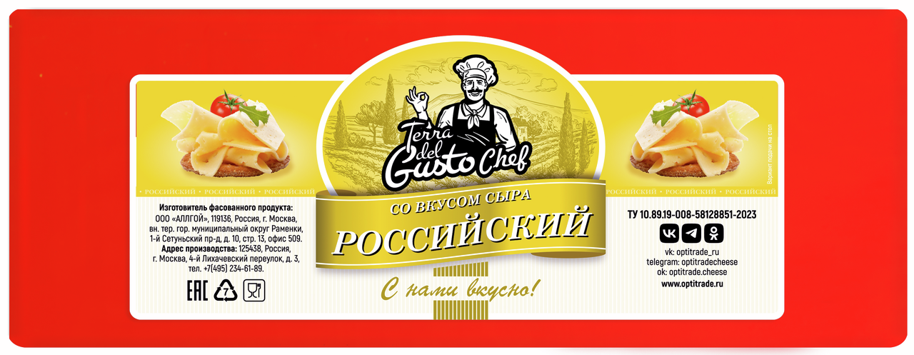 Продукт сыросодержащий Terra del Gusto Chef российский 40%, ~2.5кг