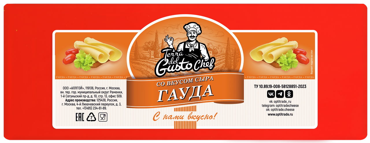 Продукт сыросодержащий Terra del Gusto гауда 40%, ~2.5кг