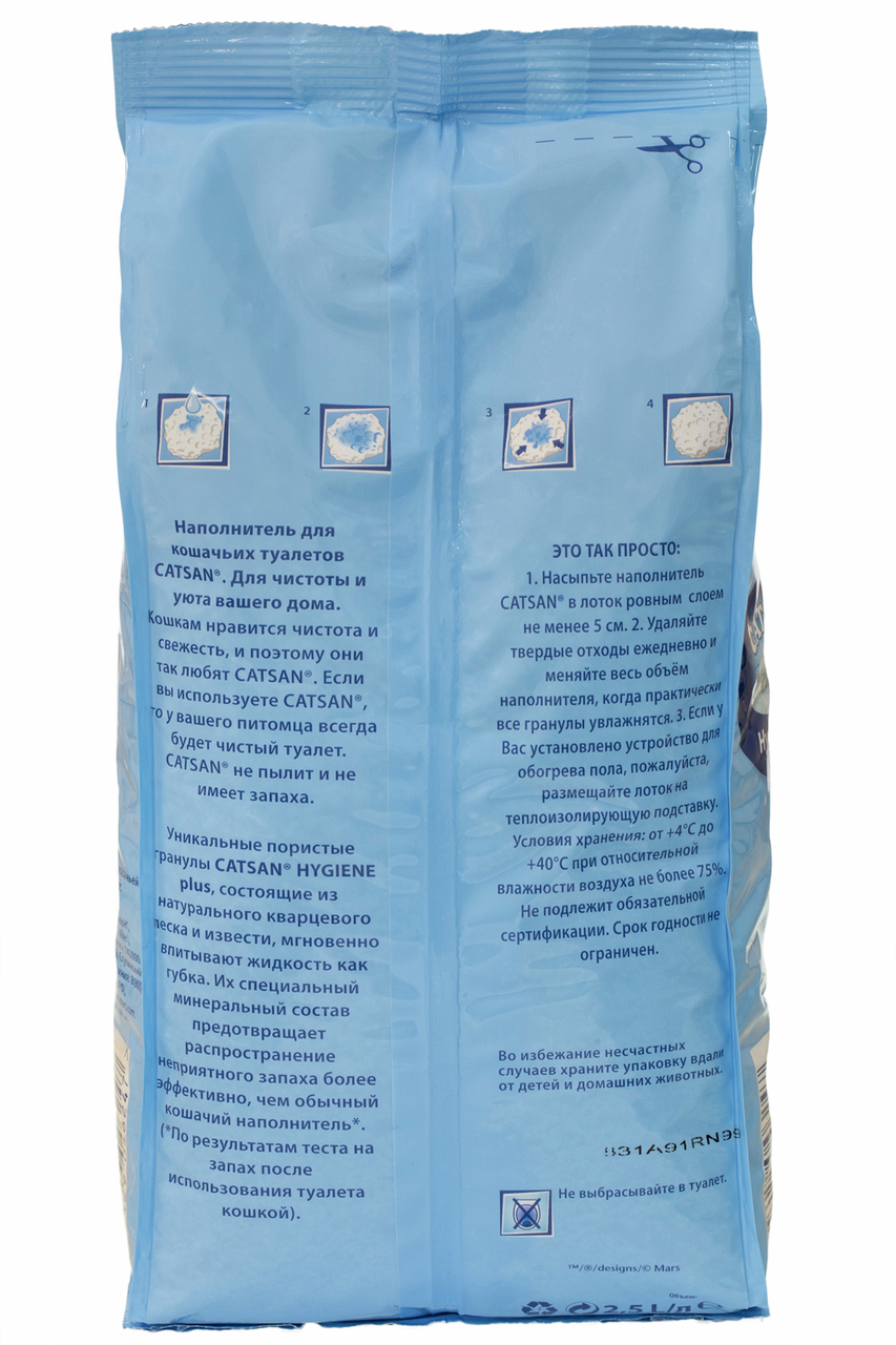 Уникальные пористые гранулы CATSAN™ HYGIENE PLUS, состоящие из натурального кварцевого песка и извести, мгновенно впитывают жидкость как губка.