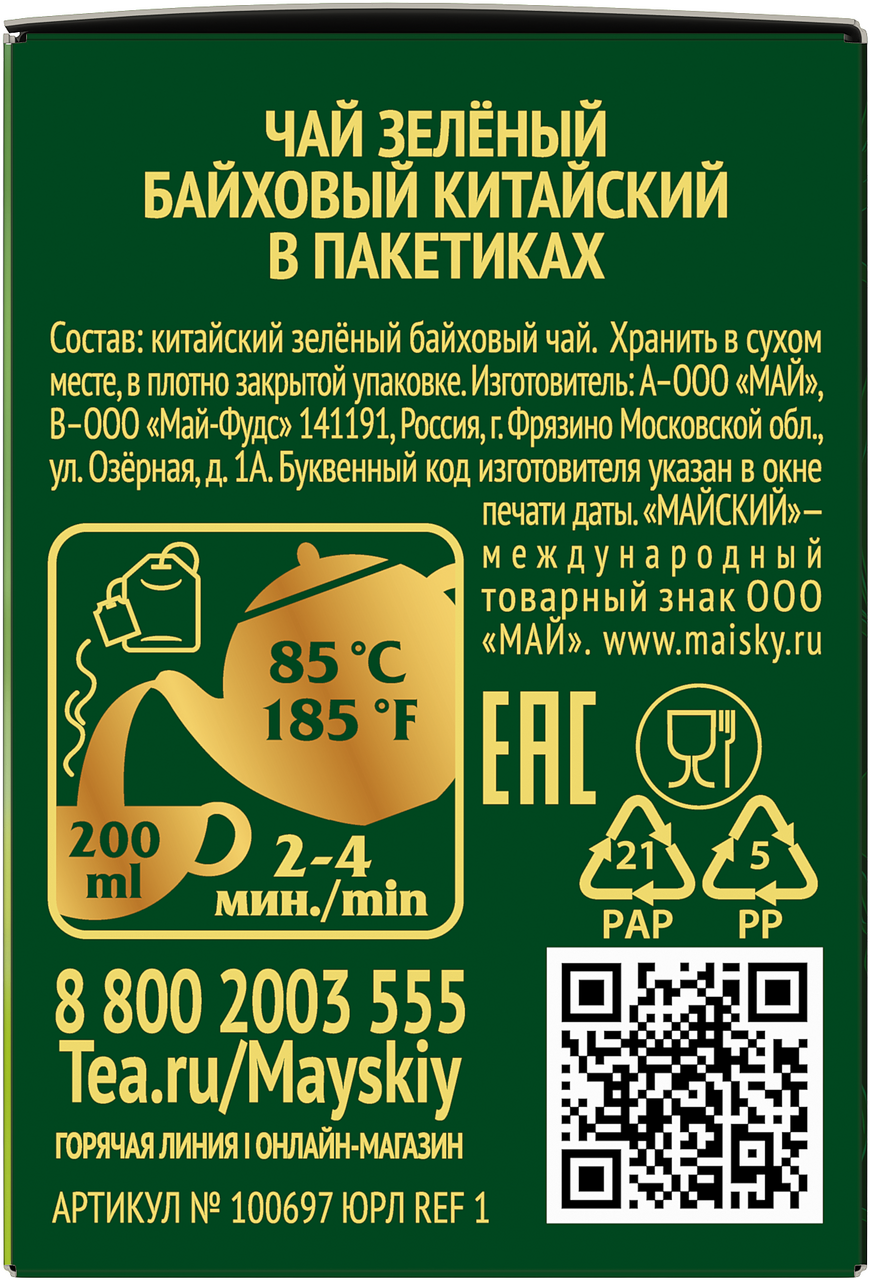 Чай зеленый Майский Китайский пакетированный (2г x 25шт), 50г