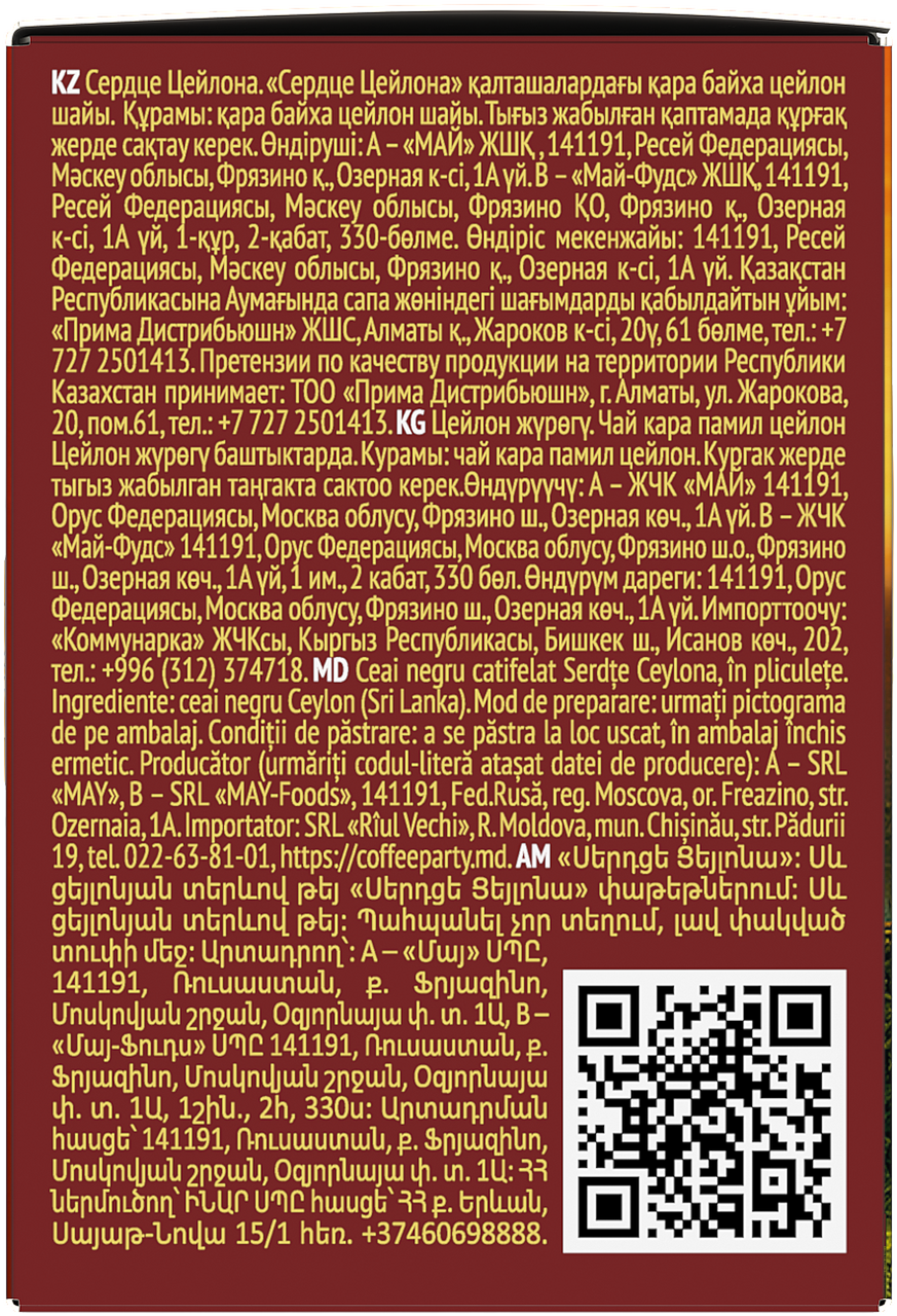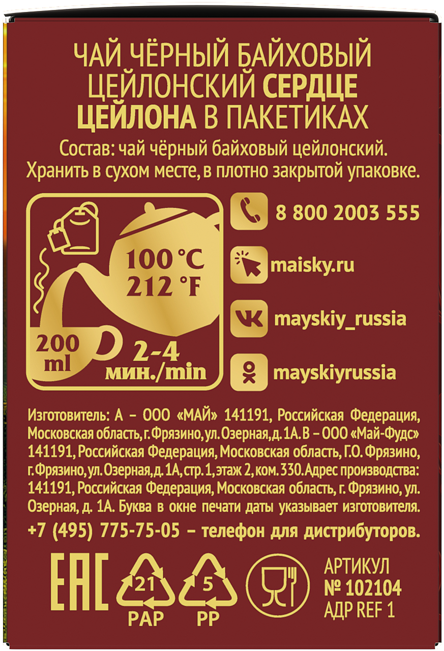 Чай Майский черный сердце цейлона (1.7г x 25шт), 43г