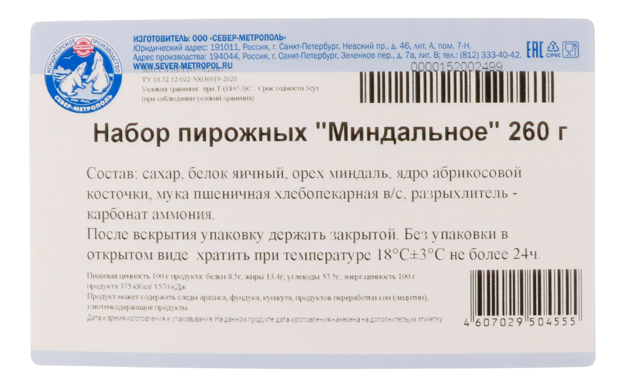 Набор пирожных Север миндальное, 260г