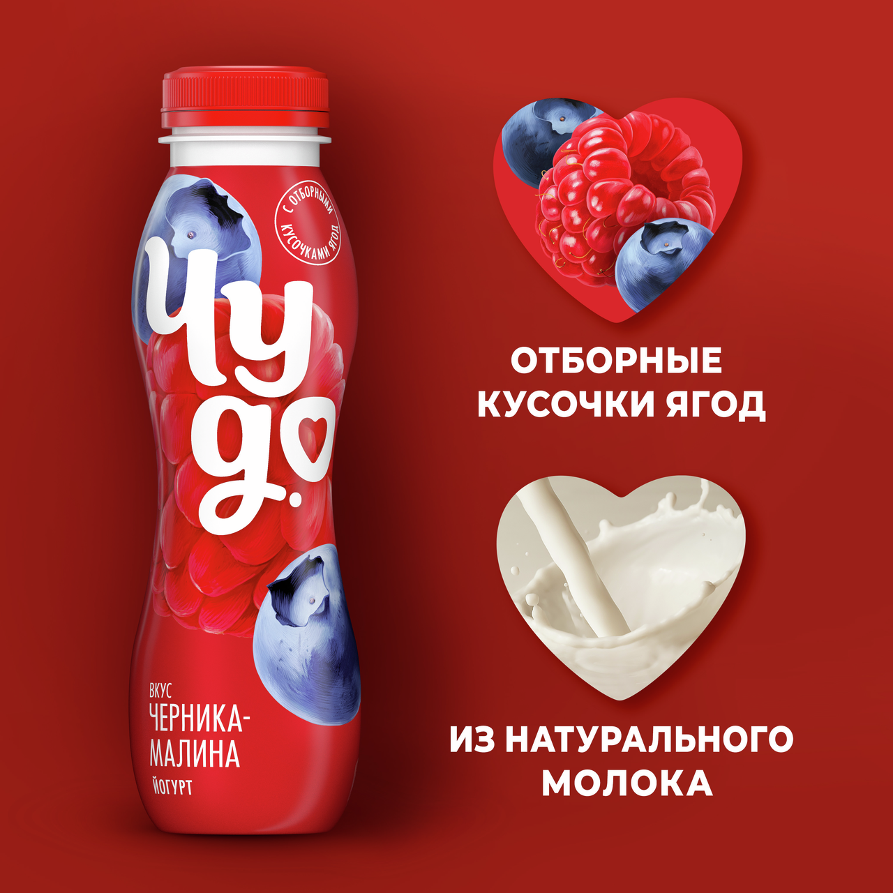 Йогурт питьевой Чудо черника-малина 1.9%, 260г