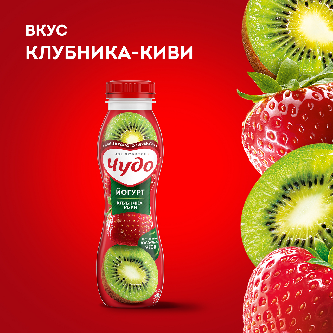 Йогурт питьевой Чудо клубника-киви 1.9%, 260г