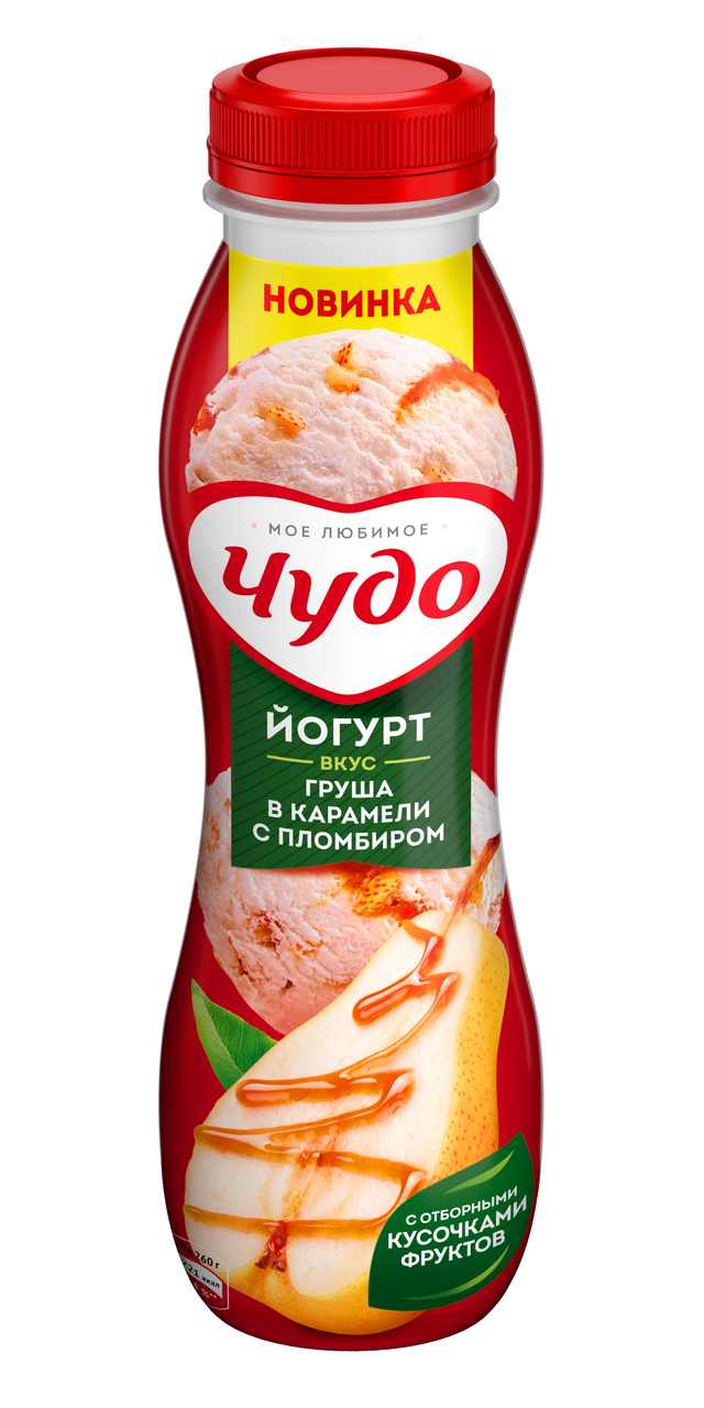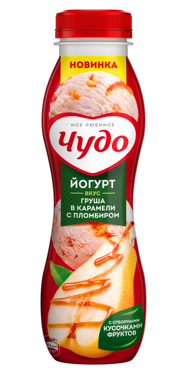 Йогурт питьевой Чудо груша-карамель-пломбир 1.9%, 260г